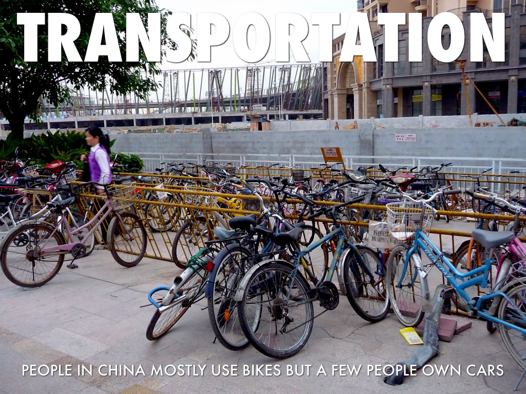 PEOPLE IN CHINA MOSTLY USE BIKES BUT A FEW PEOPLE OWN CARS