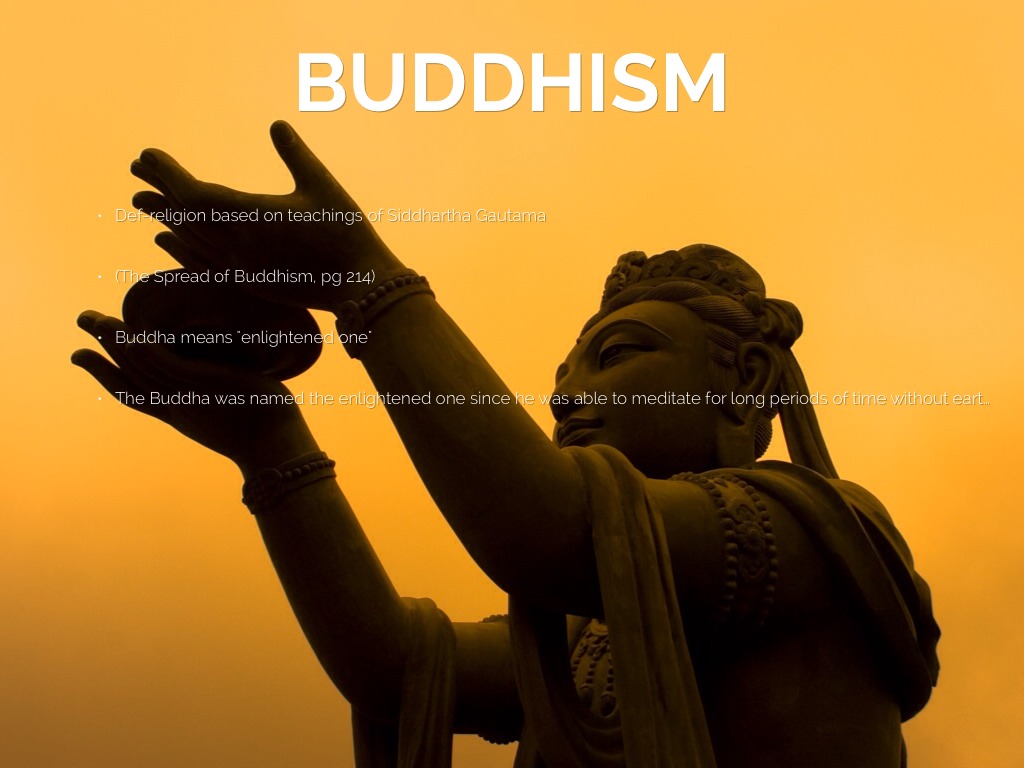• The Buddha was named the enlightened one since he was able to meditate for long periods of time without earthly possessions.