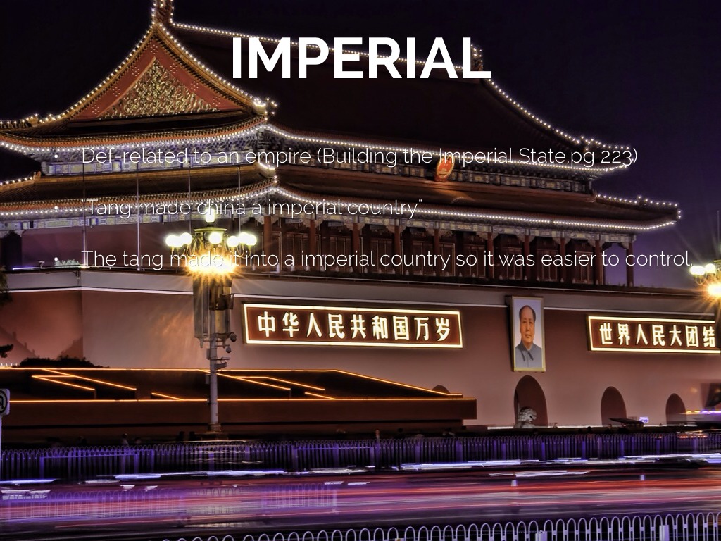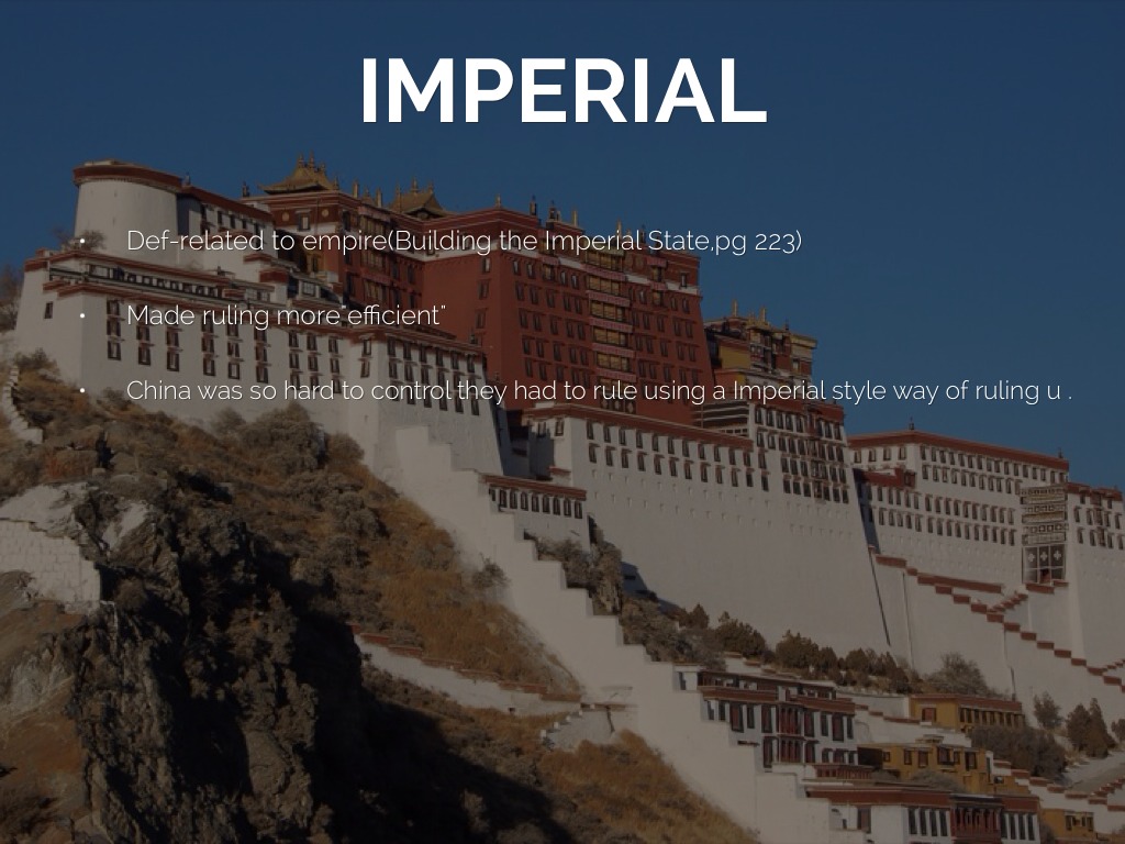 • China was so hard to control they had to rule using a Imperial style way of ruling u .