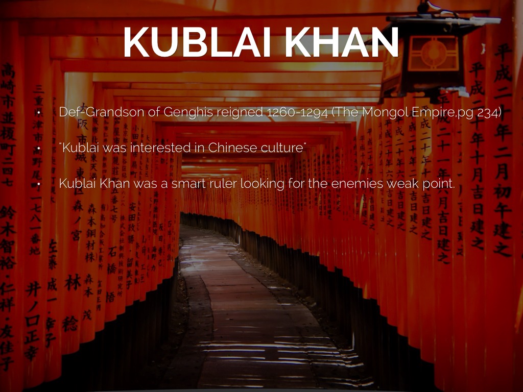 • Kublai Khan was a smart ruler looking for the enemies weak point.