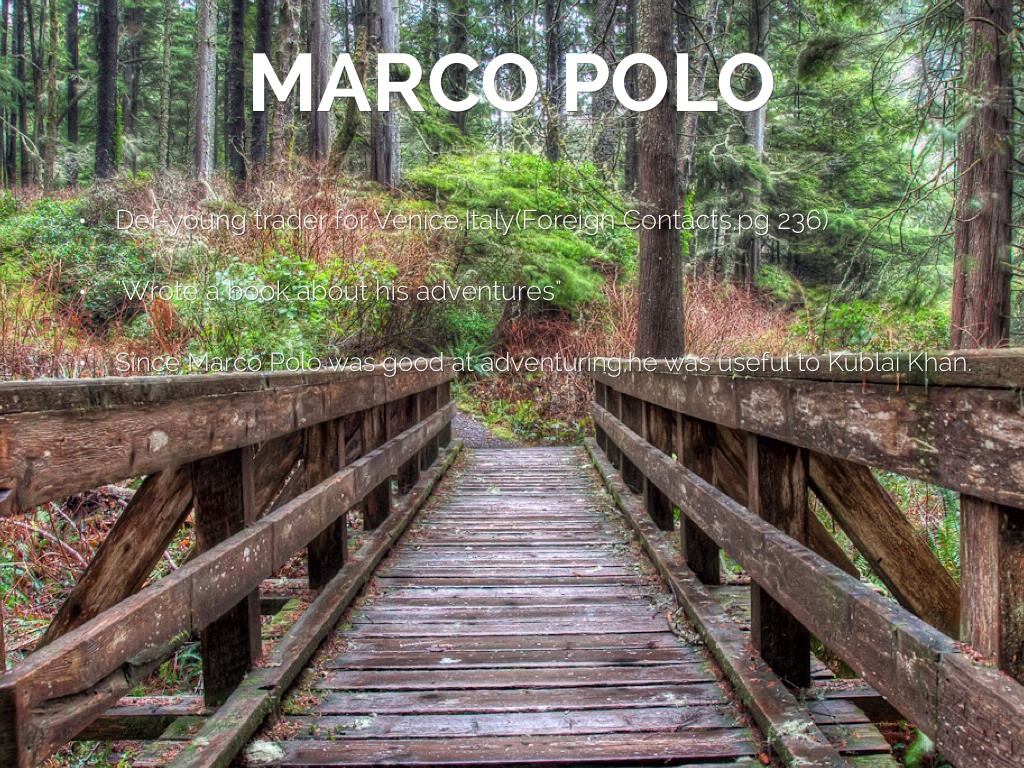 • Since Marco Polo was good at adventuring,he was useful to Kublai Khan.