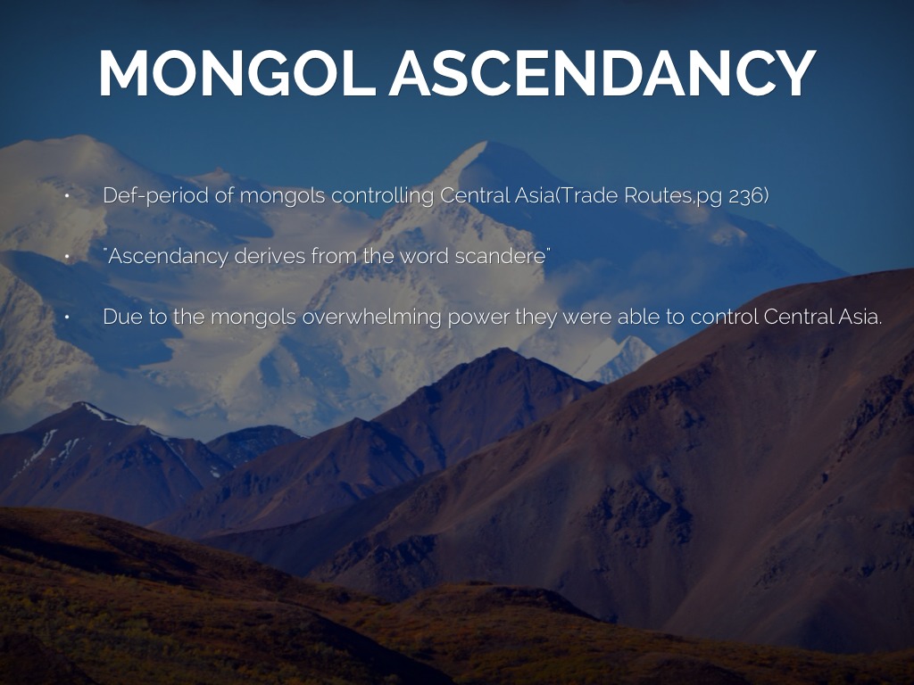 • Def-period of mongols controlling Central Asia(Trade Routes,pg 236)