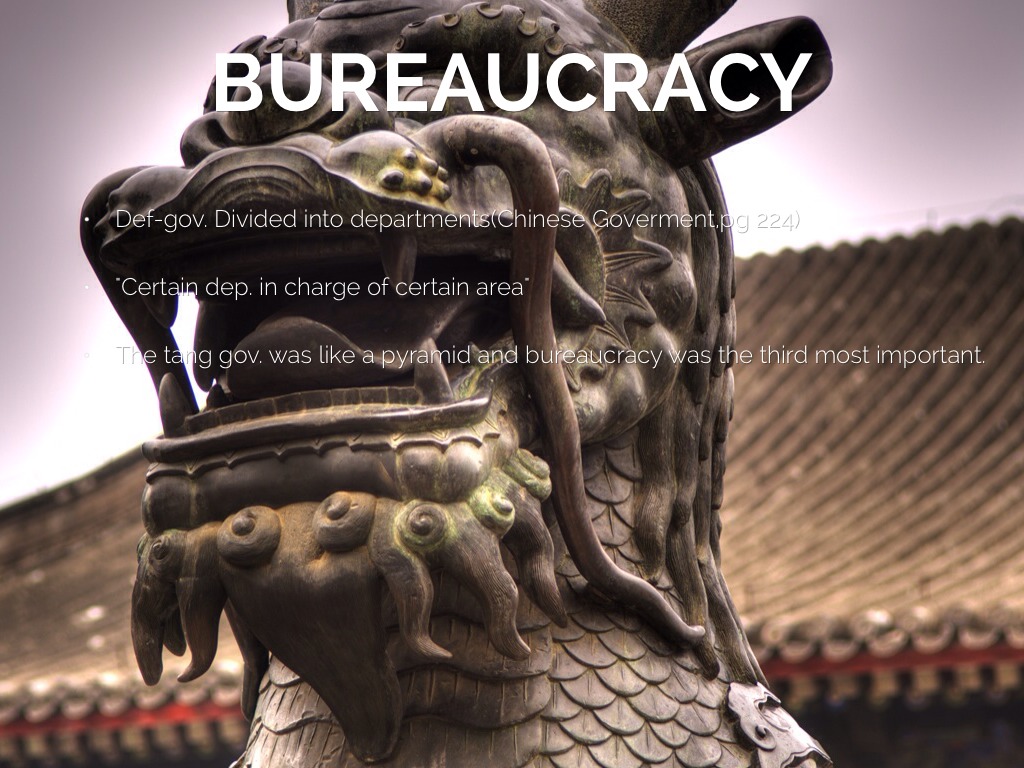 • The tang gov. was like a pyramid and bureaucracy was the third most important.