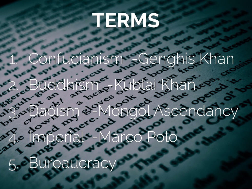 • Def-Grandson of Genghis reigned 1260-1294 (The Mongol Empire,pg 234)