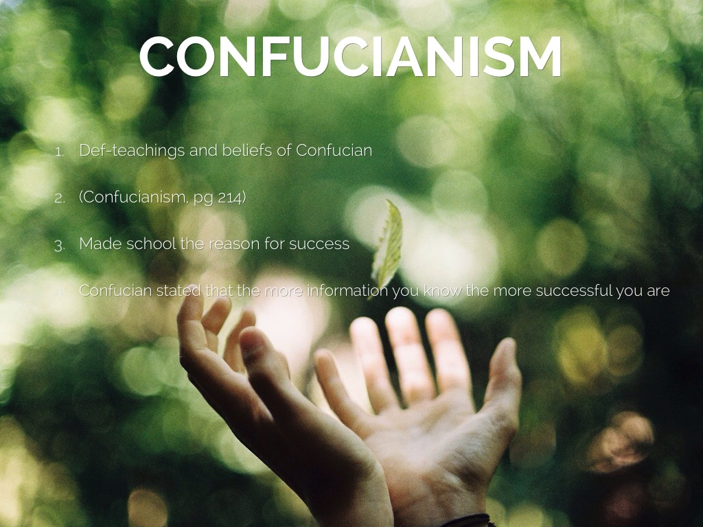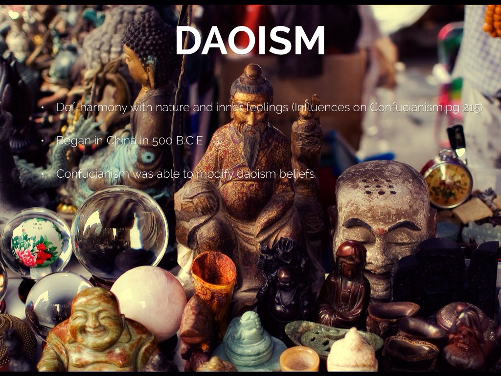 • Def-harmony with nature and inner feelings (Influences on Confucianism,pg 215)