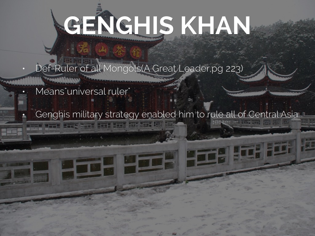 • Genghis military strategy enabled him to rule all of Central Asia.