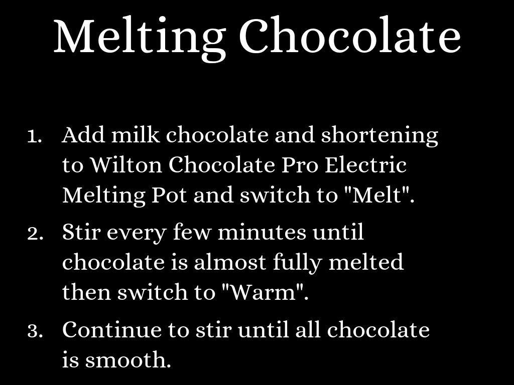 Add milk chocolate and shortening to Wilton Chocolate Pro Electric Melting Pot and switch to "Melt".