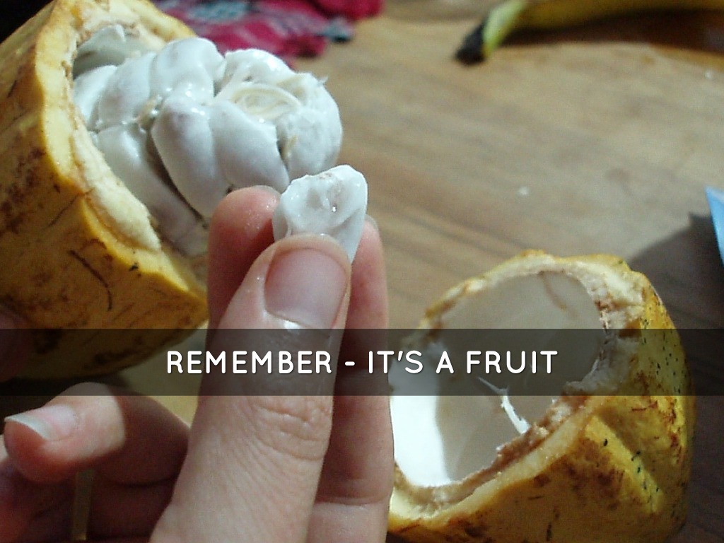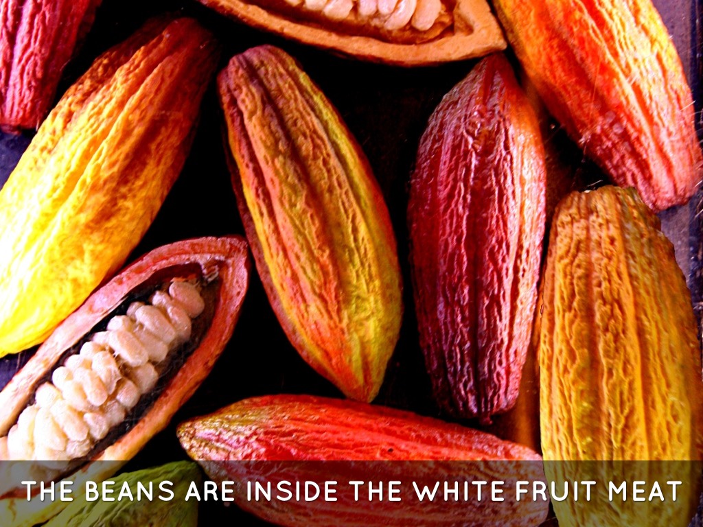THE BEANS ARE INSIDE THE WHITE FRUIT MEAT