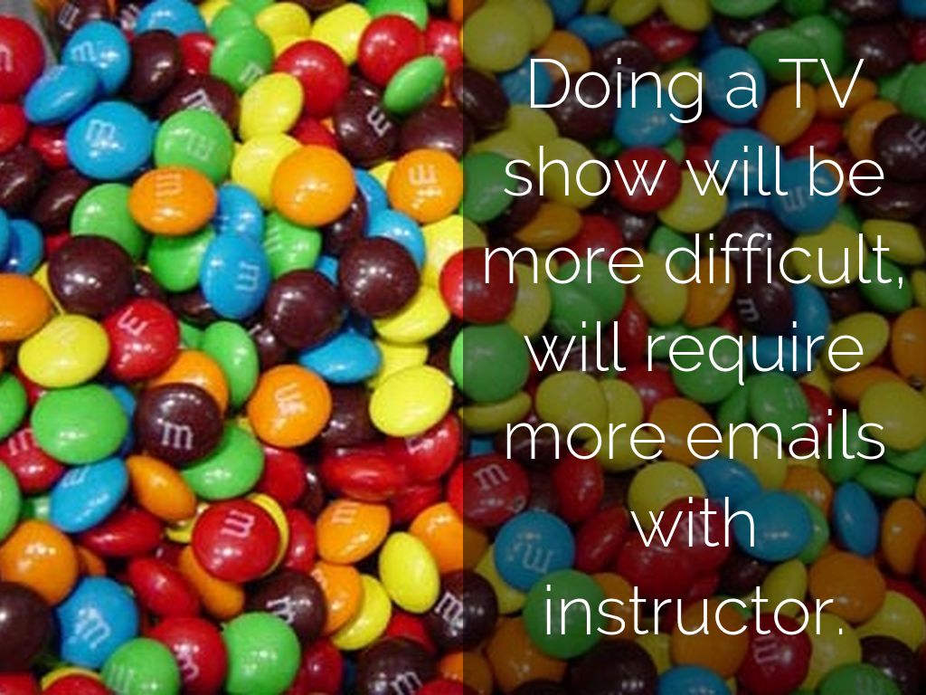 Doing a TV show will be more difficult, will require more emails with instructor.