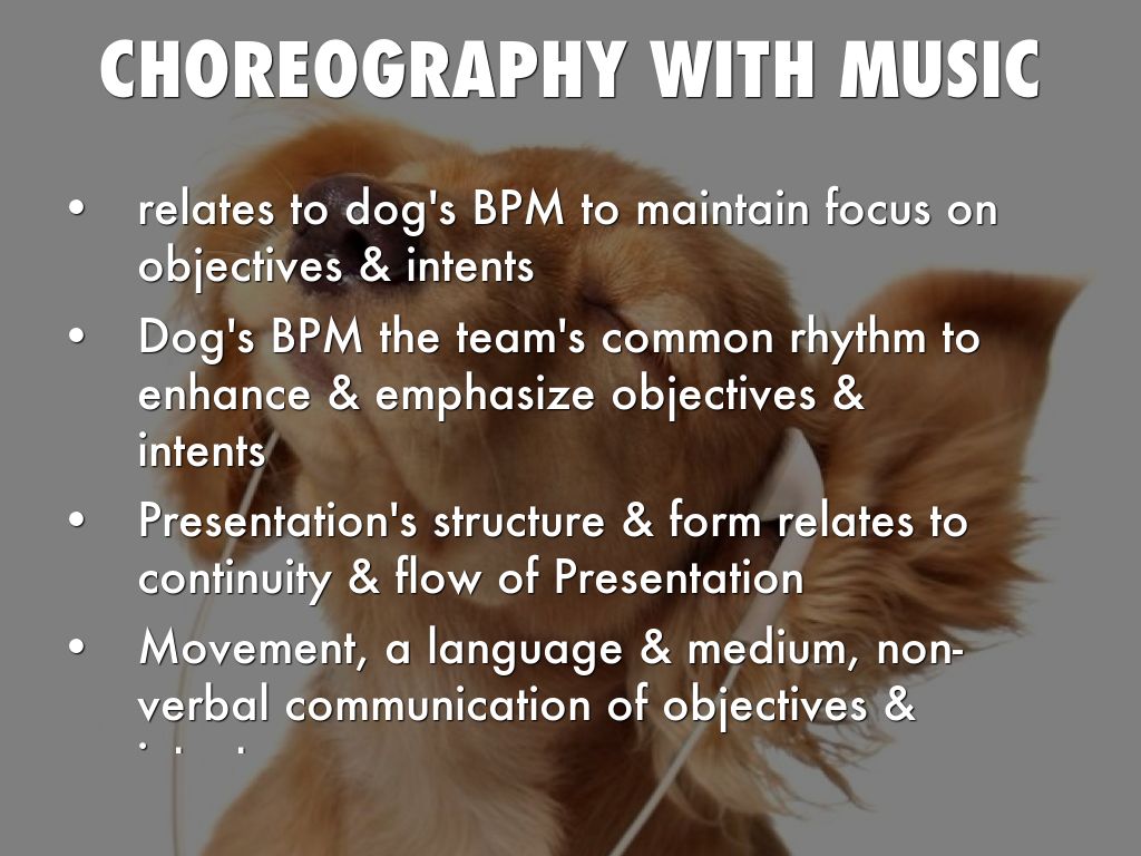 - Dog's BPM the team's common rhythm to enhance & emphasize objectives & intents