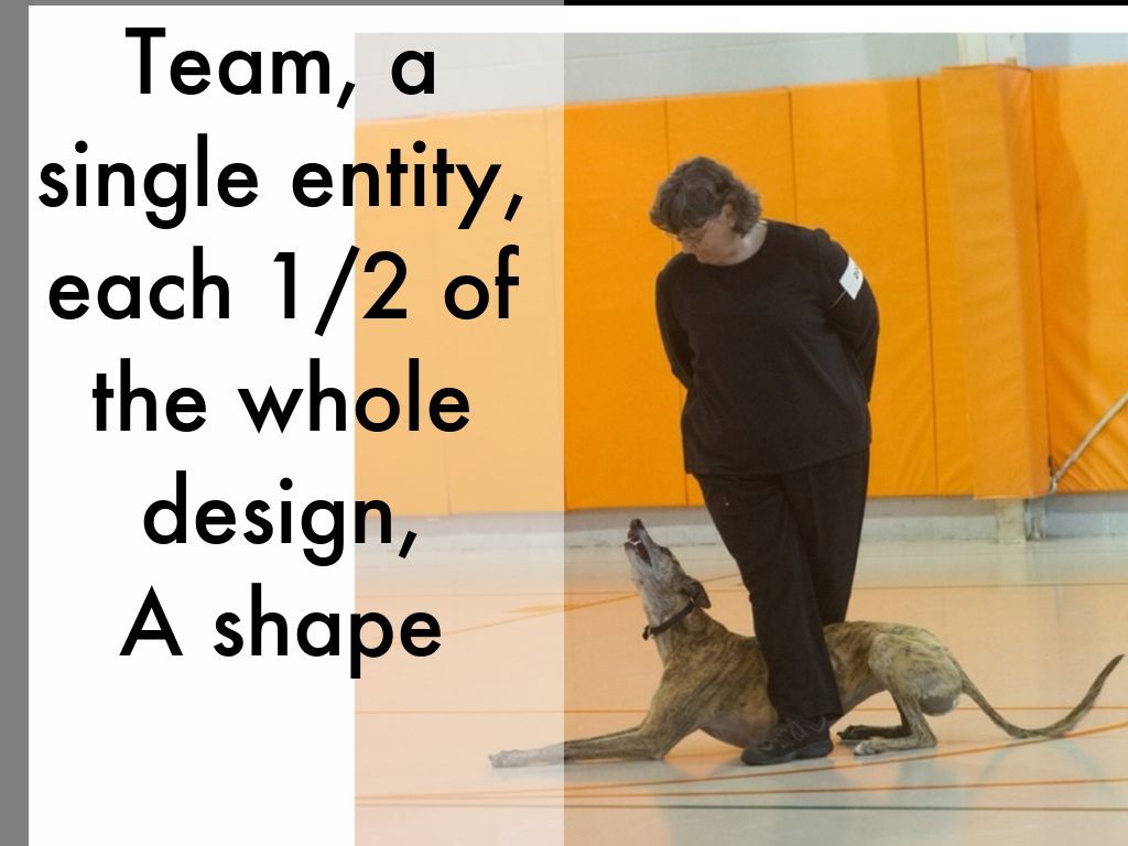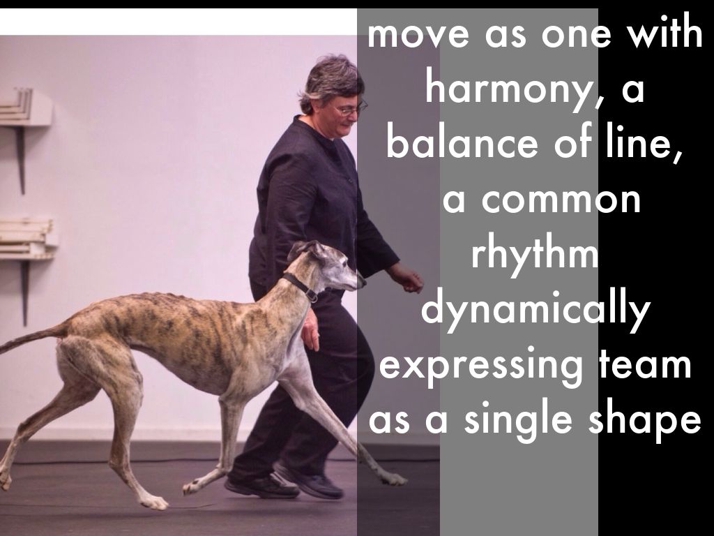 Move as one with harmony & balance, a common rhythm, dynamically expressing team as a single shape