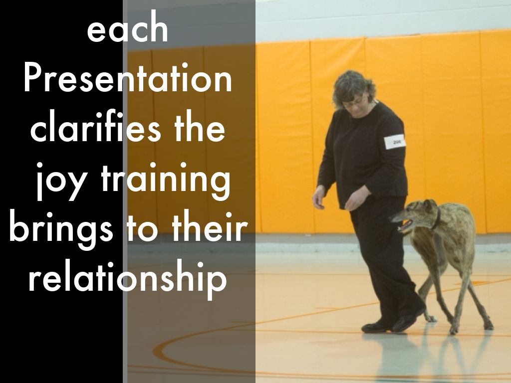 4. Dog Training,using positive reinforcement. Each presentation is a unique expression of the team's joy to work and train as one.