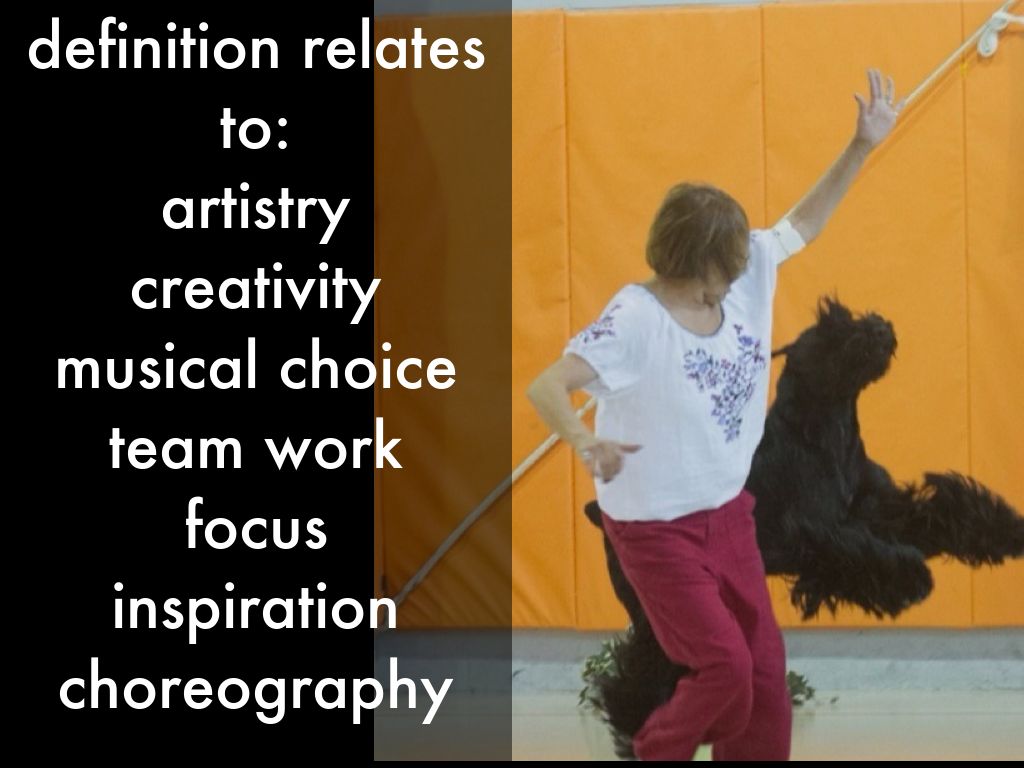 3. Choreography with music to express relationship to test training creatively and artistically.