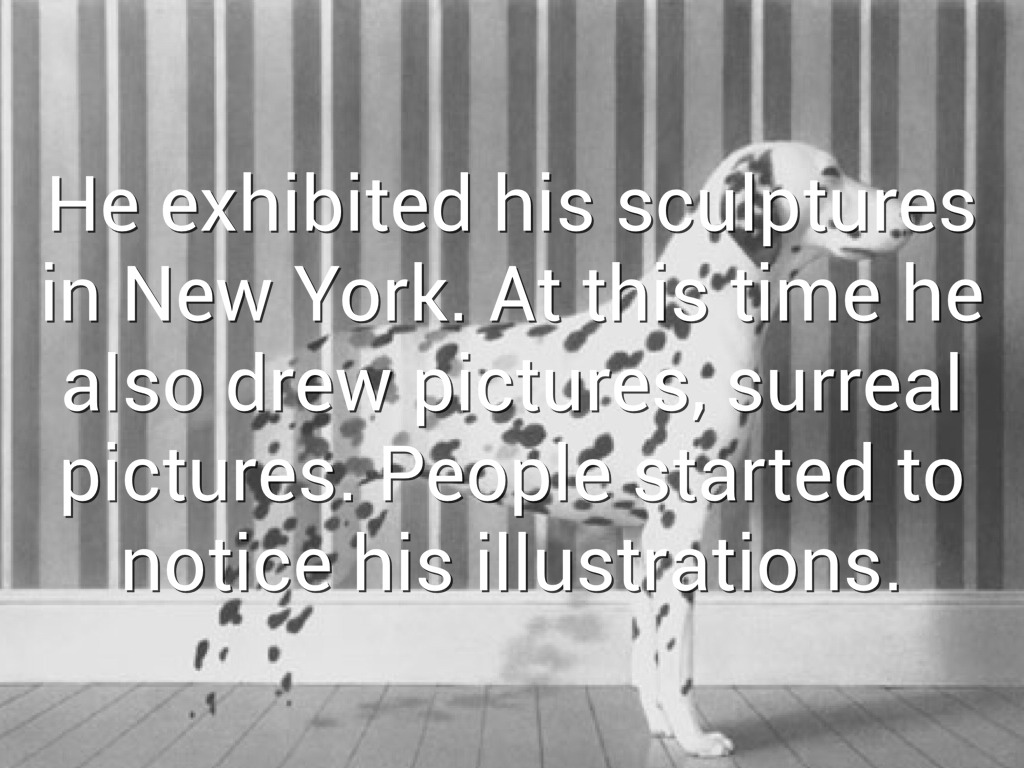 He exhibited his sculptures in New York. At this time he also drew pictures, surreal pictures. People started to notice his illustrations.