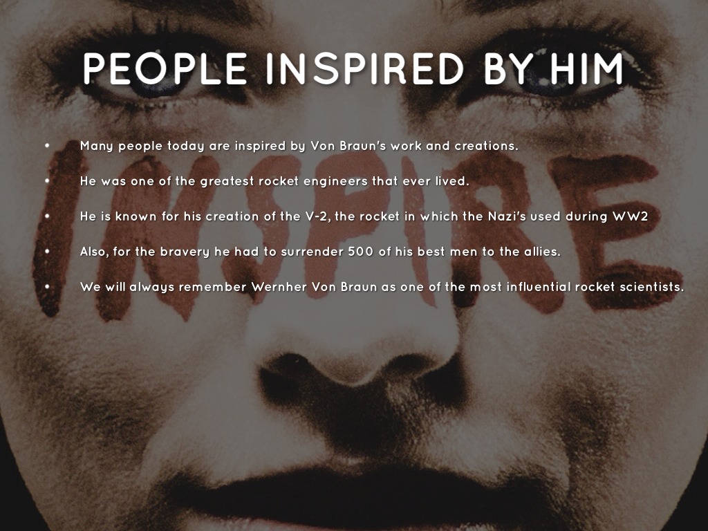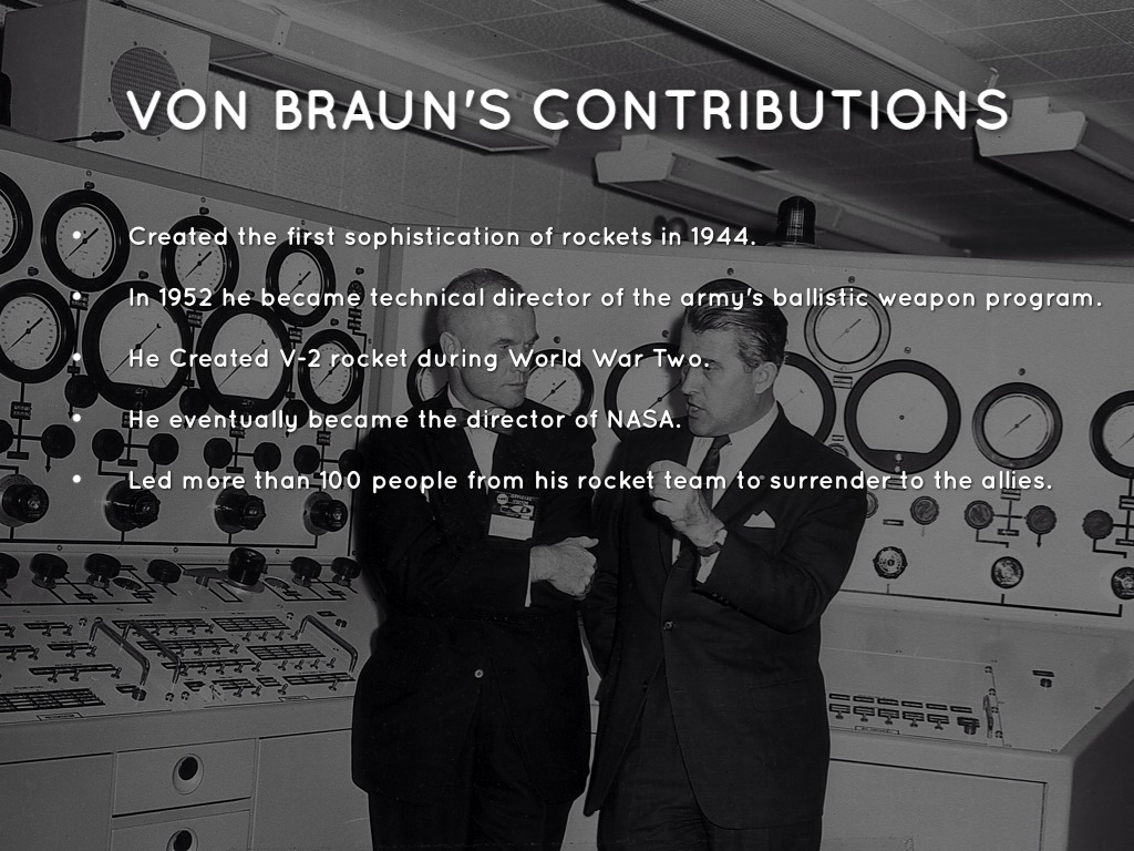 He is known for his creation of the V-2, the rocket in which the Nazi's used during WW2