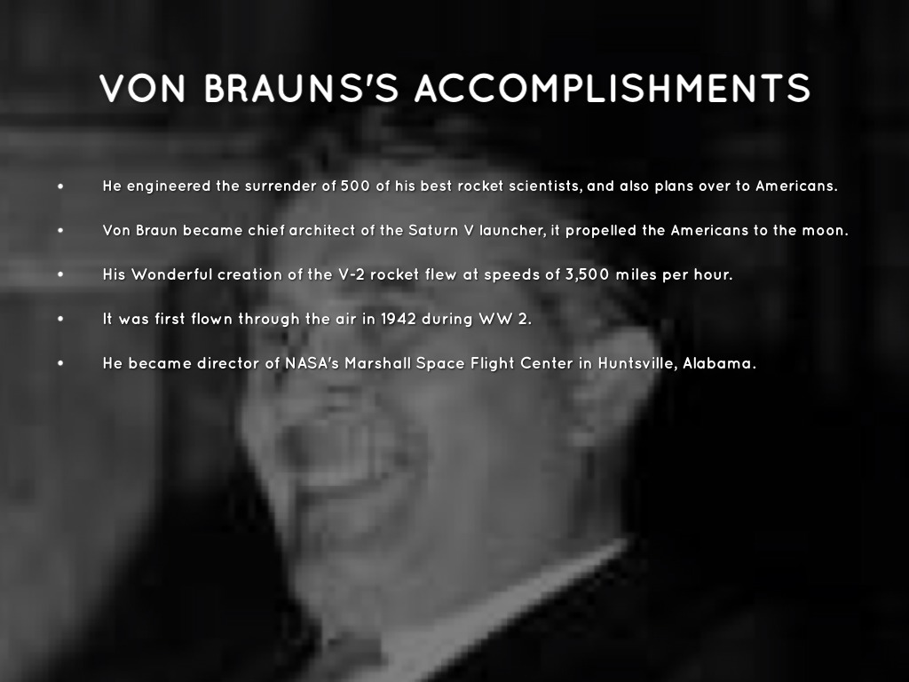 His Wonderful creation of the V-2 rocket flew at speeds of 3,500 miles per hour.
