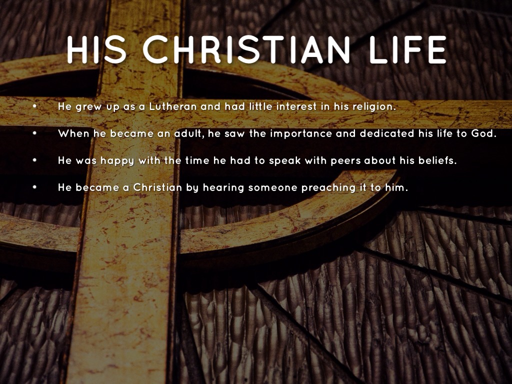 His religion was that he was in Lutherism and he was devoted to Jesus Christ our Savior.