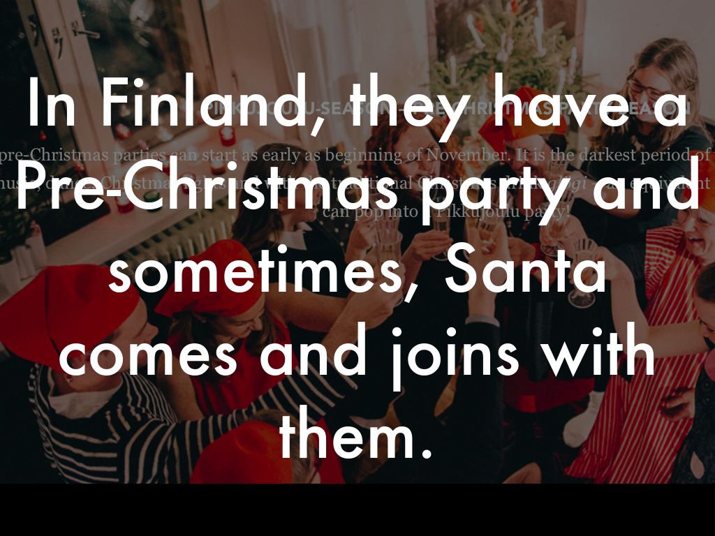 In Finland, they have a Pre-Christmas party and sometimes, Santa comes and joins with them.