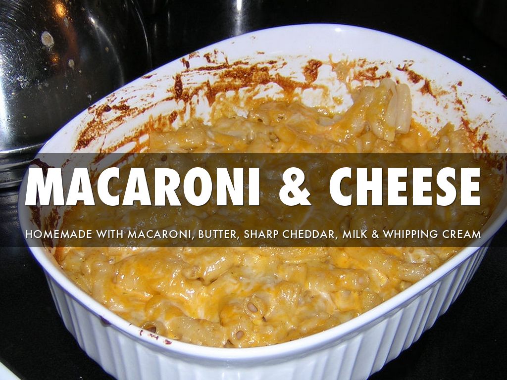 HOMEMADE WITH MACARONI, BUTTER, SHARP CHEDDAR, MILK & WHIPPING CREAM