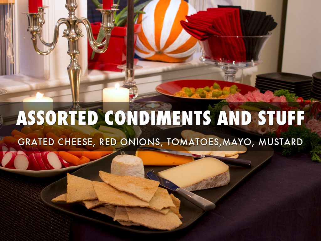 GRATED CHEESE, RED ONIONS, TOMATOES,MAYO, MUSTARD