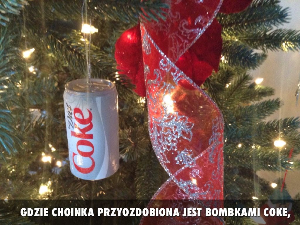 GDZIE CHOINKA PRZYOZDOBIONA JEST BOMBKAMI COKE,
