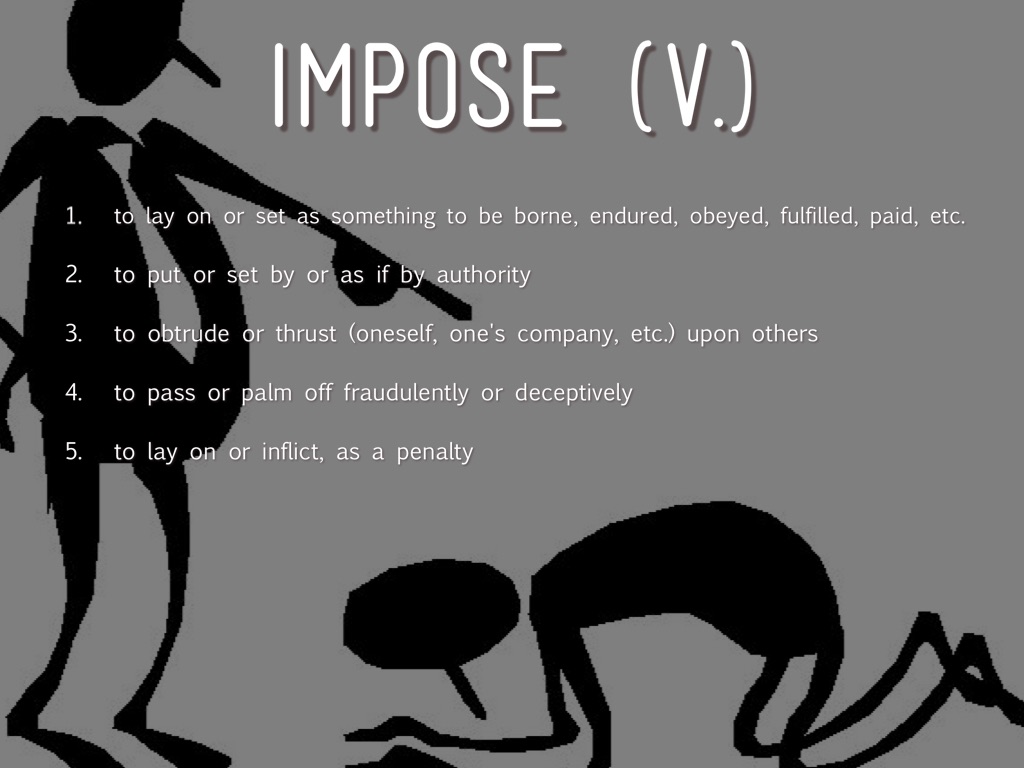 to lay on or set as something to be borne, endured, obeyed, fulfilled, paid, etc.