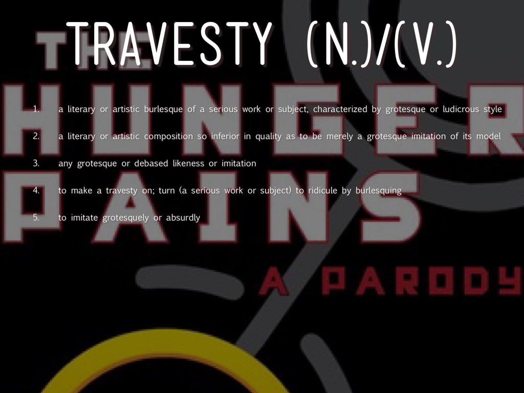 to make a travesty on; turn (a serious work or subject) to ridicule by burlesquing