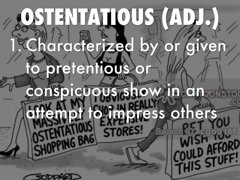 Characterized by or given to pretentious or conspicuous show in an attempt to impress others