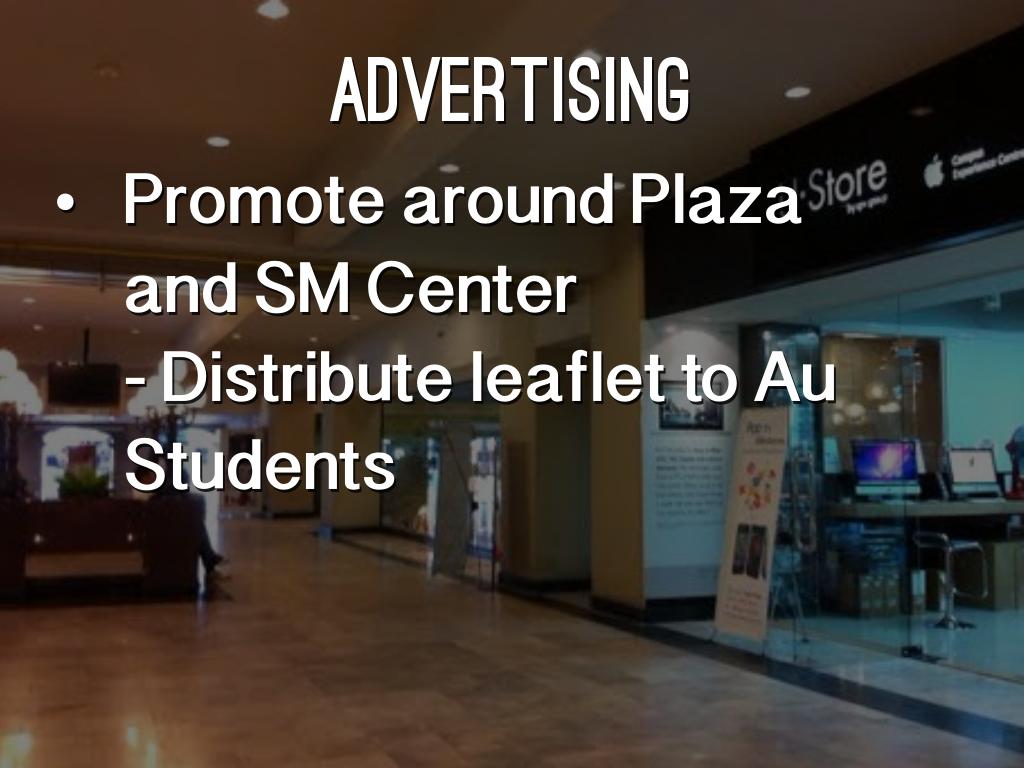 • Promote around Plaza and SM Center - Distribute leaflet to Au Students