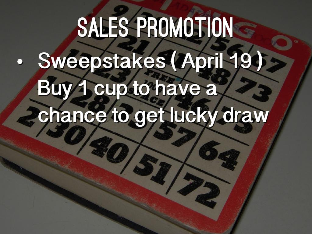 • Sweepstakes ( April 19 ) Buy 1 cup to have a chance to get lucky draw