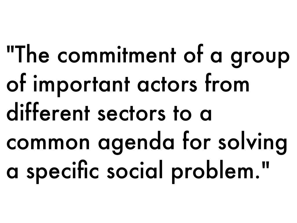 "The commitment of a group of important actors from different sectors to a common agenda for solving a specific social problem."
