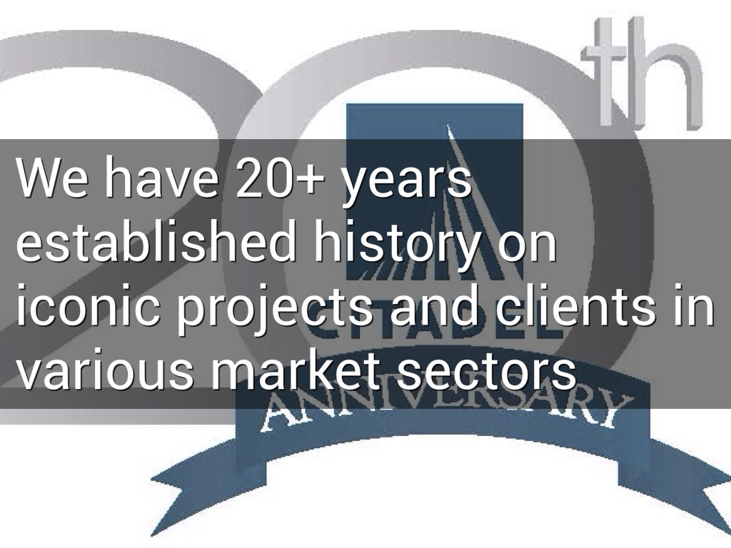 We have 20+ years established history on iconic projects and clients in various market sectors