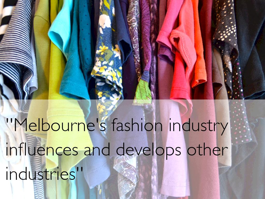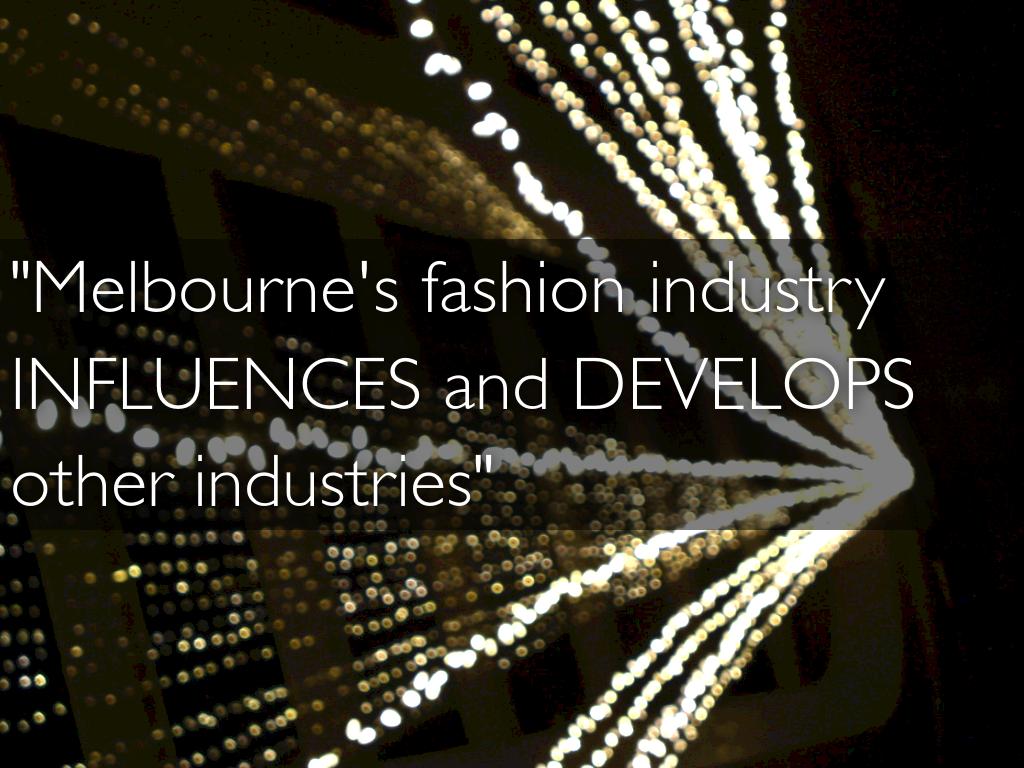 "Melbourne's fashion industry INFLUENCES and DEVELOPS other industries"