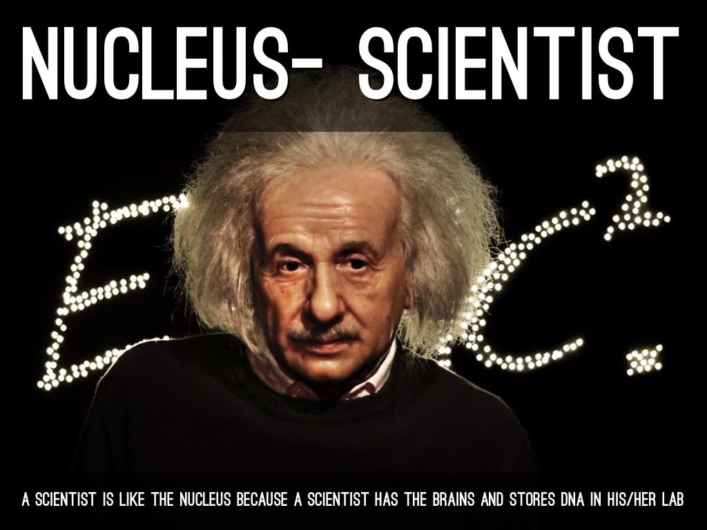 A SCIENTIST IS LIKE THE NUCLEUS BECAUSE A SCIENTIST HAS THE BRAINS AND STORES DNA IN HIS/HER LAB