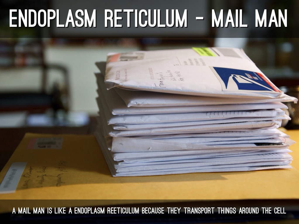 A MAIL MAN IS LIKE A ENDOPLASM REETICULUM BECAUSE THEY TRANSPORT THINGS AROUND THE CELL