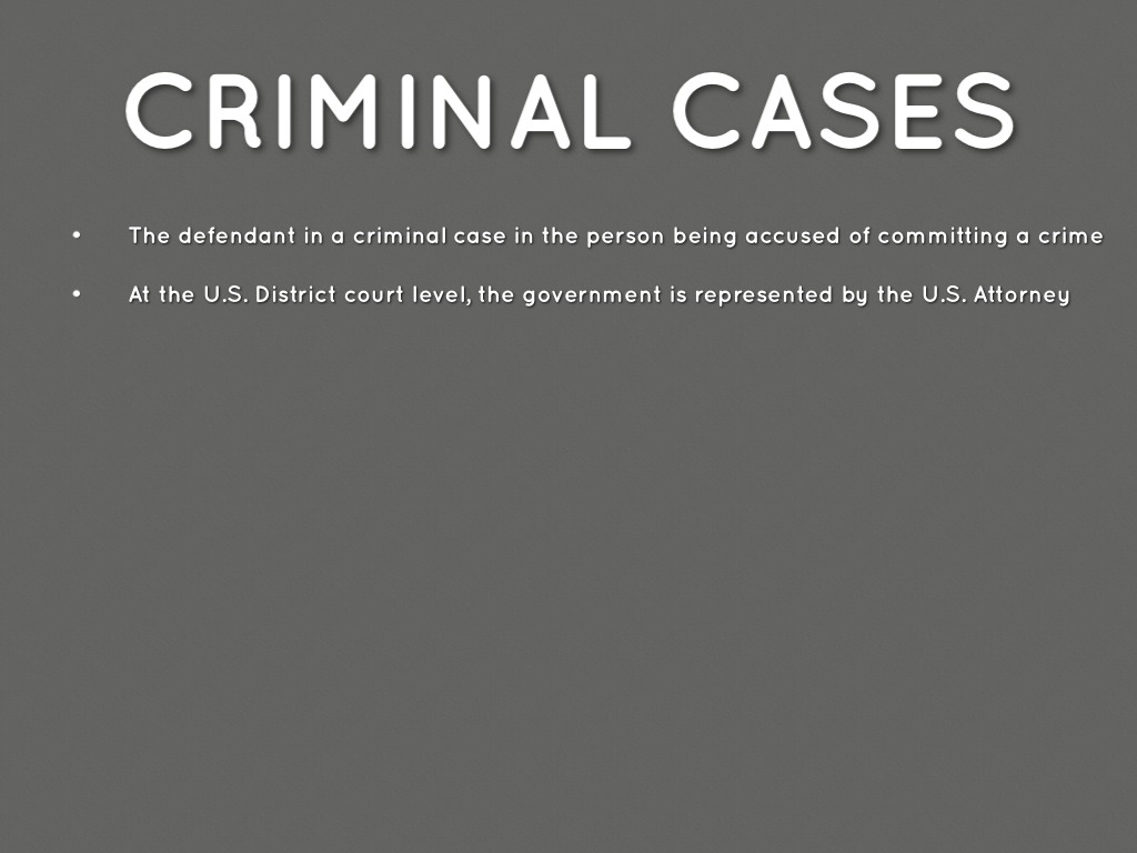 At the U.S. District court level, the government is represented by the U.S. Attorney