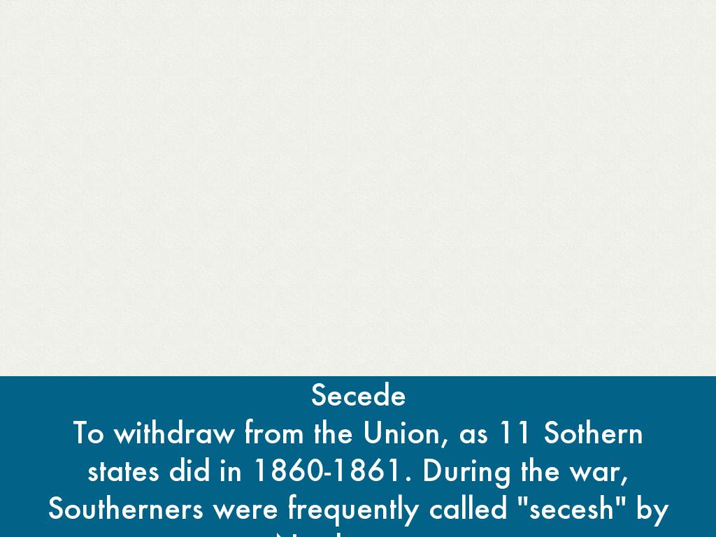 To withdraw from the Union, as 11 Sothern states did in 1860-1861. During the war, Southerners were frequently called "secesh" by Northerners.