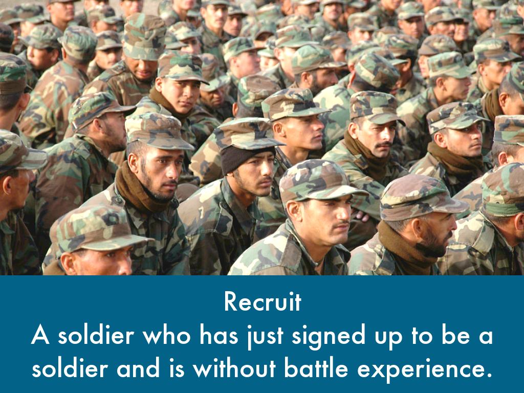 A soldier who has just signed up to be a soldier and is without battle experience.
