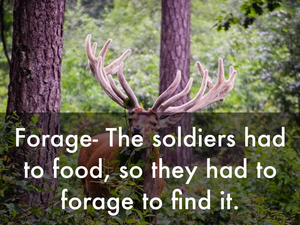 Forage- The soldiers had to food, so they had to forage to find it.