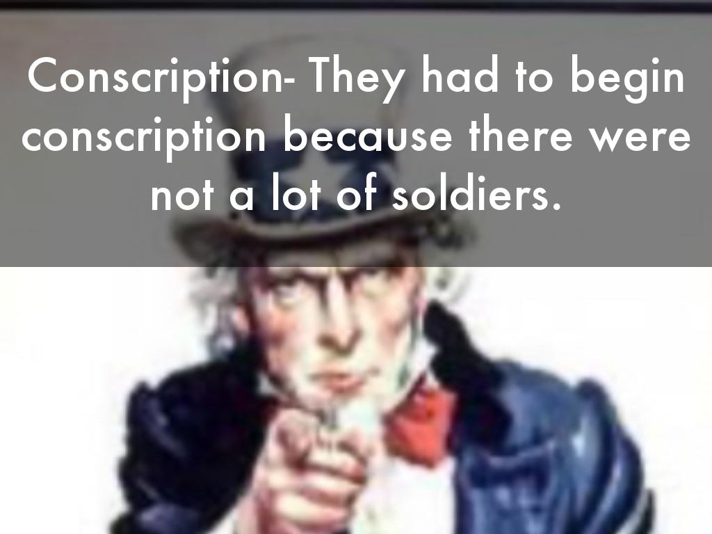 Conscription- They had to begin conscription because there were not a lot of soldiers.