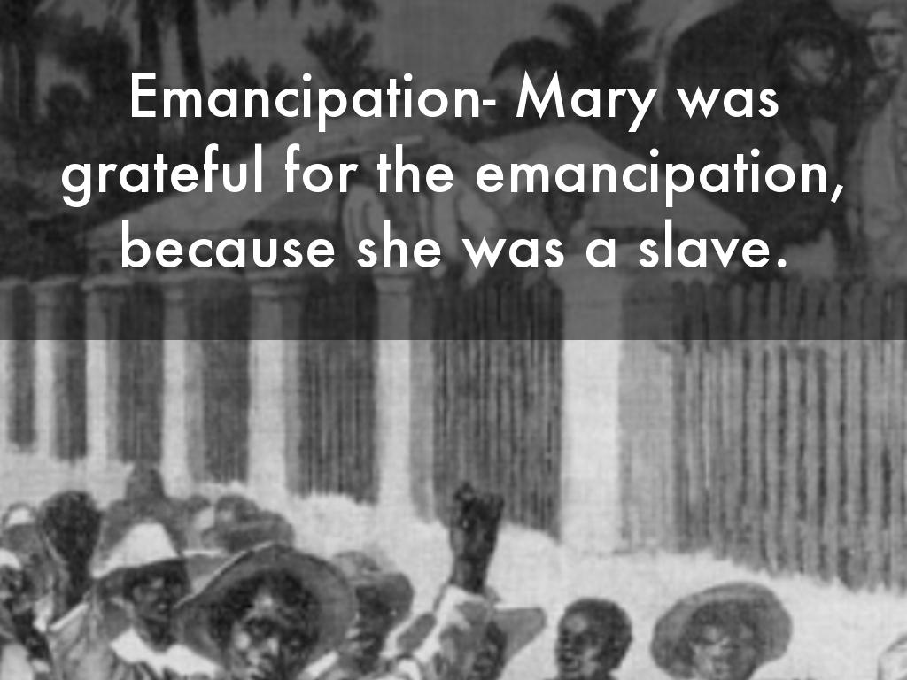 Emancipation- Mary was grateful for the emancipation, because she was a slave.