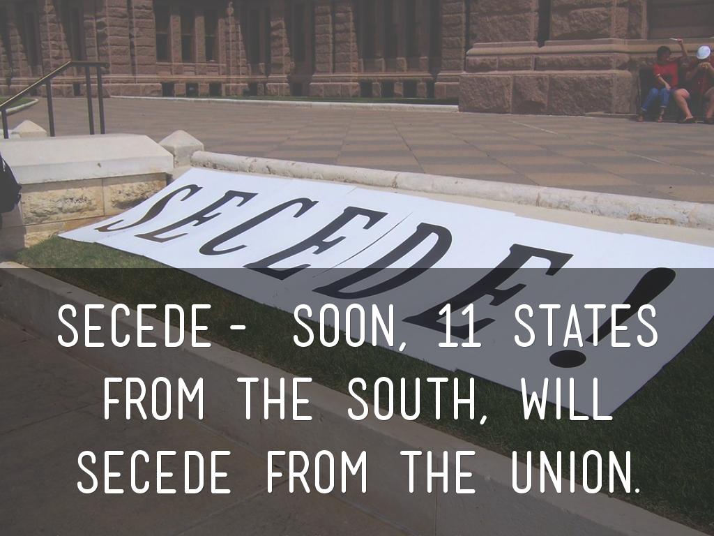 Secede- Soon, 11 states from the South, will secede from the Union.