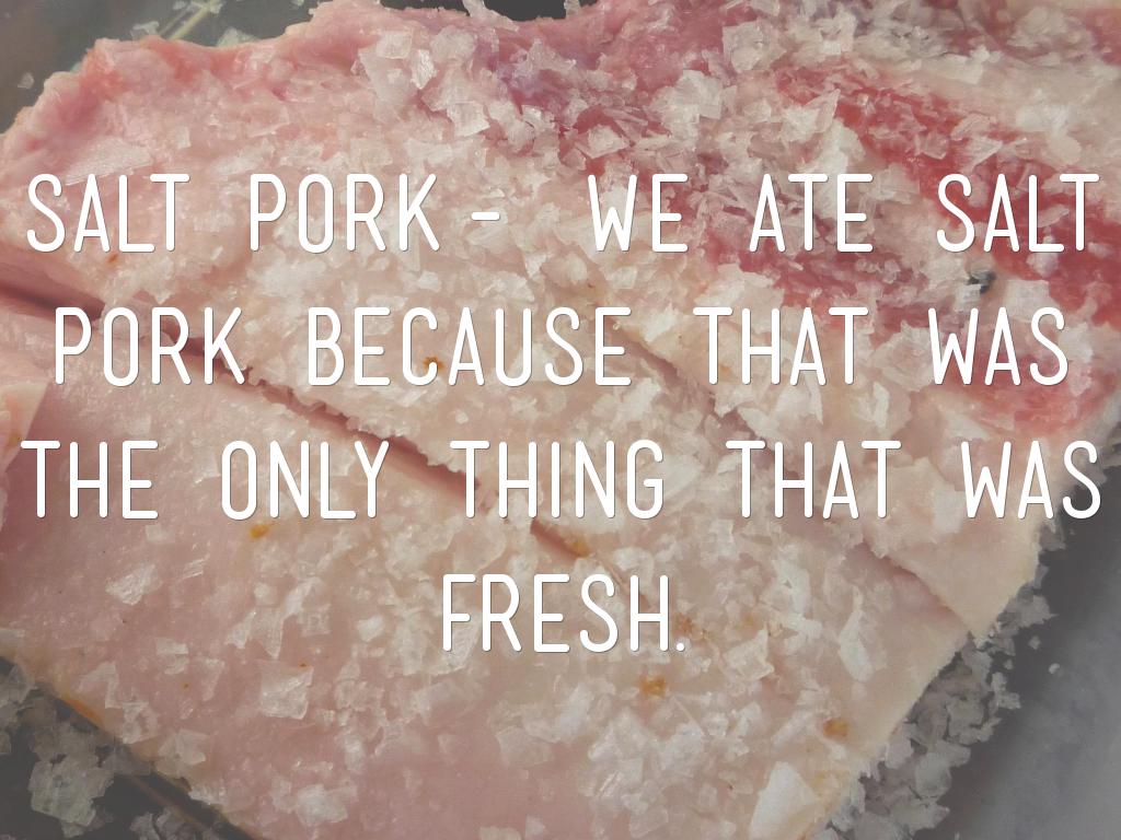 Salt Pork- We ate salt pork because that was the only thing that was fresh.