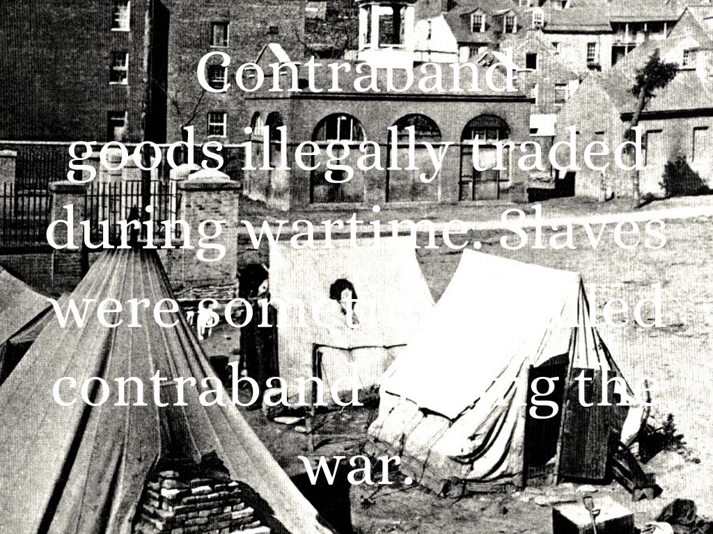 goods illegally traded during wartime. Slaves were sometimes called contraband during the war.