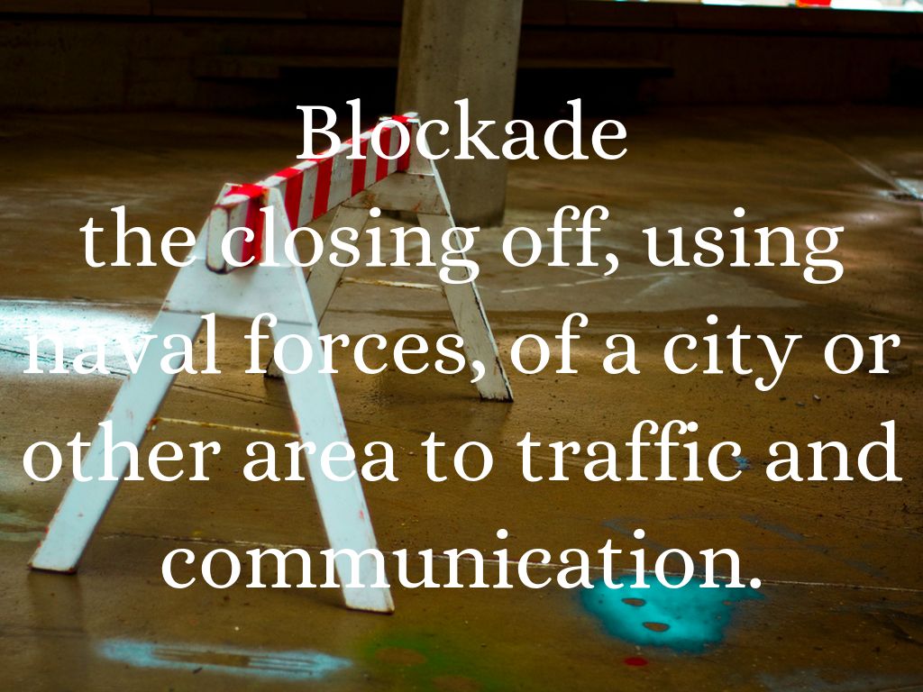 the closing off, using naval forces, of a city or other area to traffic and communication.