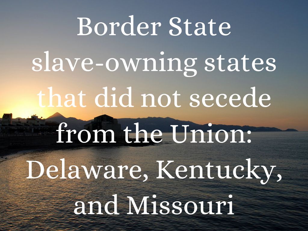slave-owning states that did not secede from the Union: Delaware, Kentucky, and Missouri
