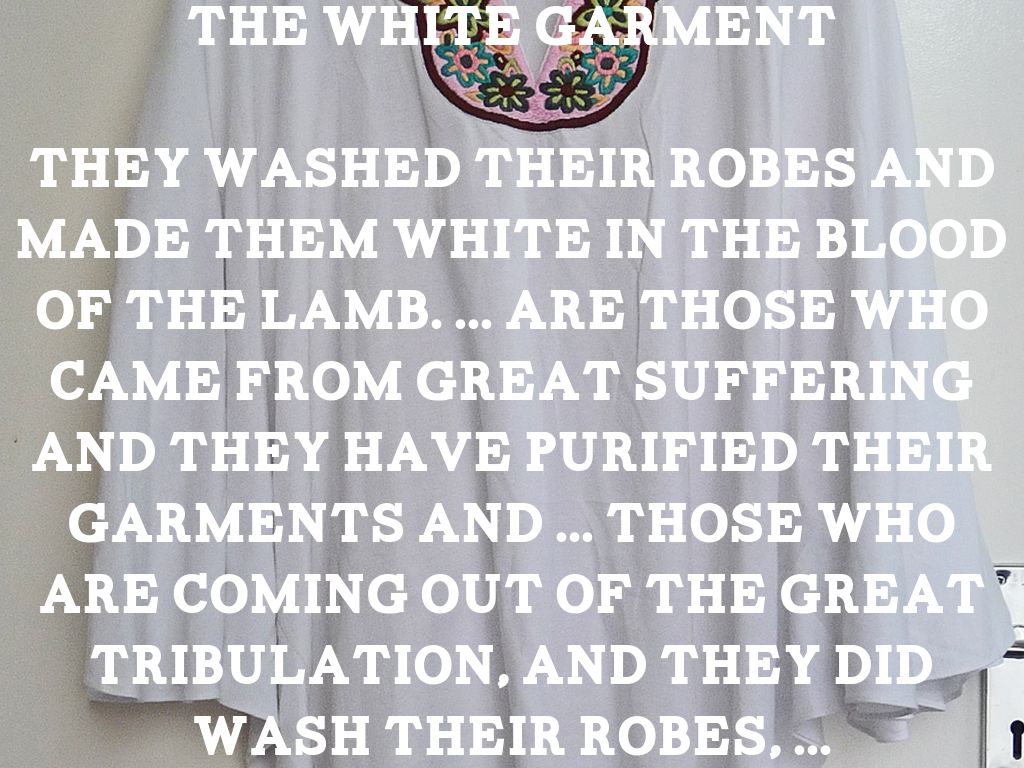 They washed their robes and made them white in the blood of the Lamb. ... are those who came from great suffering and they have purified their garments and ... those who are coming out of the great tribulation, and they did wash their robes, ...