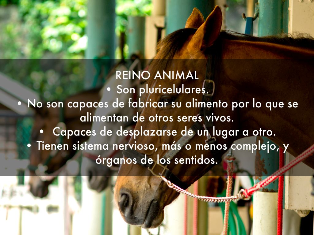REINO ANIMAL • Son pluricelulares. • No son capaces de fabricar su alimento por lo que se alimentan de otros seres vivos. • Capaces de desplazarse de un lugar a otro. • Tienen sistema nervioso, más o menos complejo, y órganos de los sentidos.