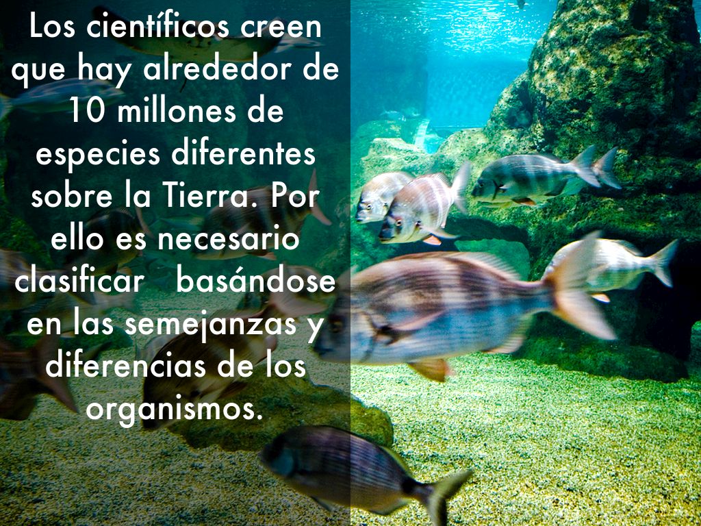 Los científicos creen que hay alrededor de 10 millones de especies diferentes sobre la Tierra. Por ello es necesario clasificar basándose en las semejanzas y diferencias de los organismos.