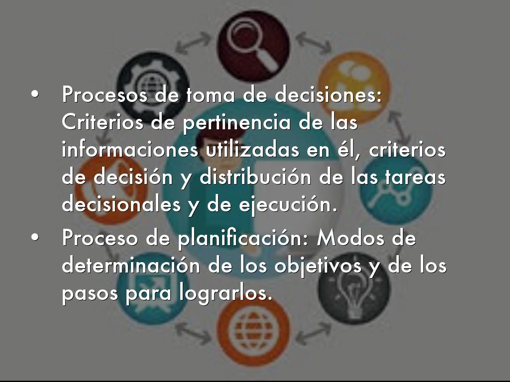 Procesos de toma de decisiones: Criterios de pertinencia de las informaciones utilizadas en él, criterios de decisión y distribución de las tareas decisionales y de ejecución.